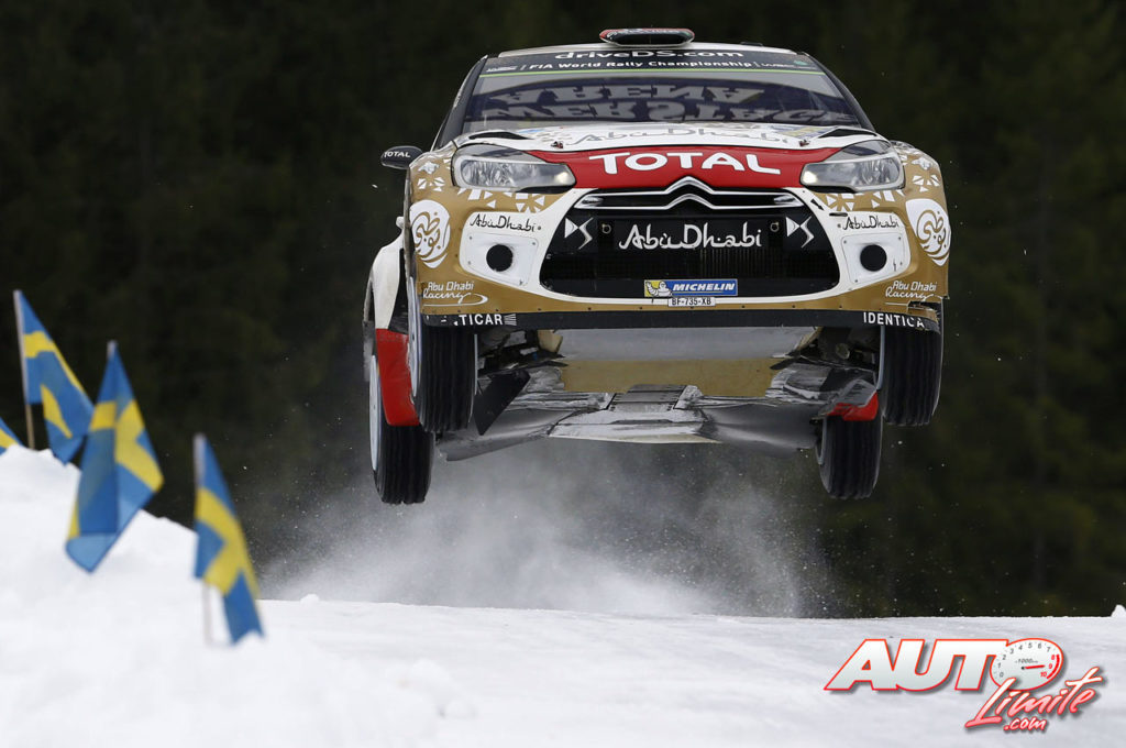 Mads Ostberg, al volante del Citroën DS3 WRC, durante el Rally de Suecia 2015, puntuable para el Campeonato del Mundo de Rallies WRC.