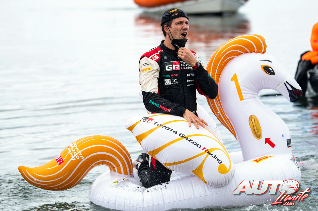 Sébastien Ogier (Toyota) se daba un baño en las aguas del Mediterráneo tras celebrar el podio, como es tradición del vencedor en el Rally de Italia / Cerdeña.