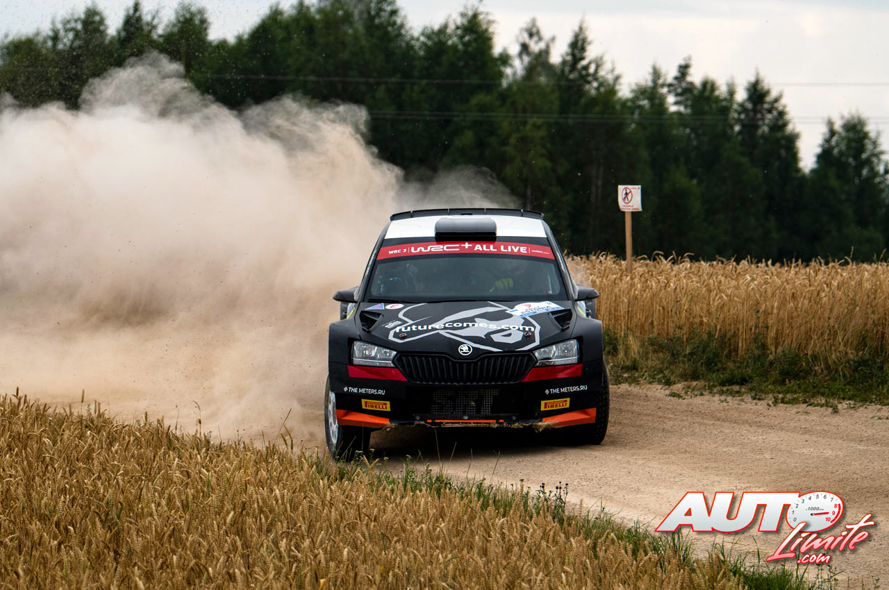 Alexey Lukyanuk, al volante del Skoda Fabia Rally2 Evo WRC 3, durante el Rally de Estonia 2021, puntuable para el Campeonato del Mundo de Rallies WRC 3.