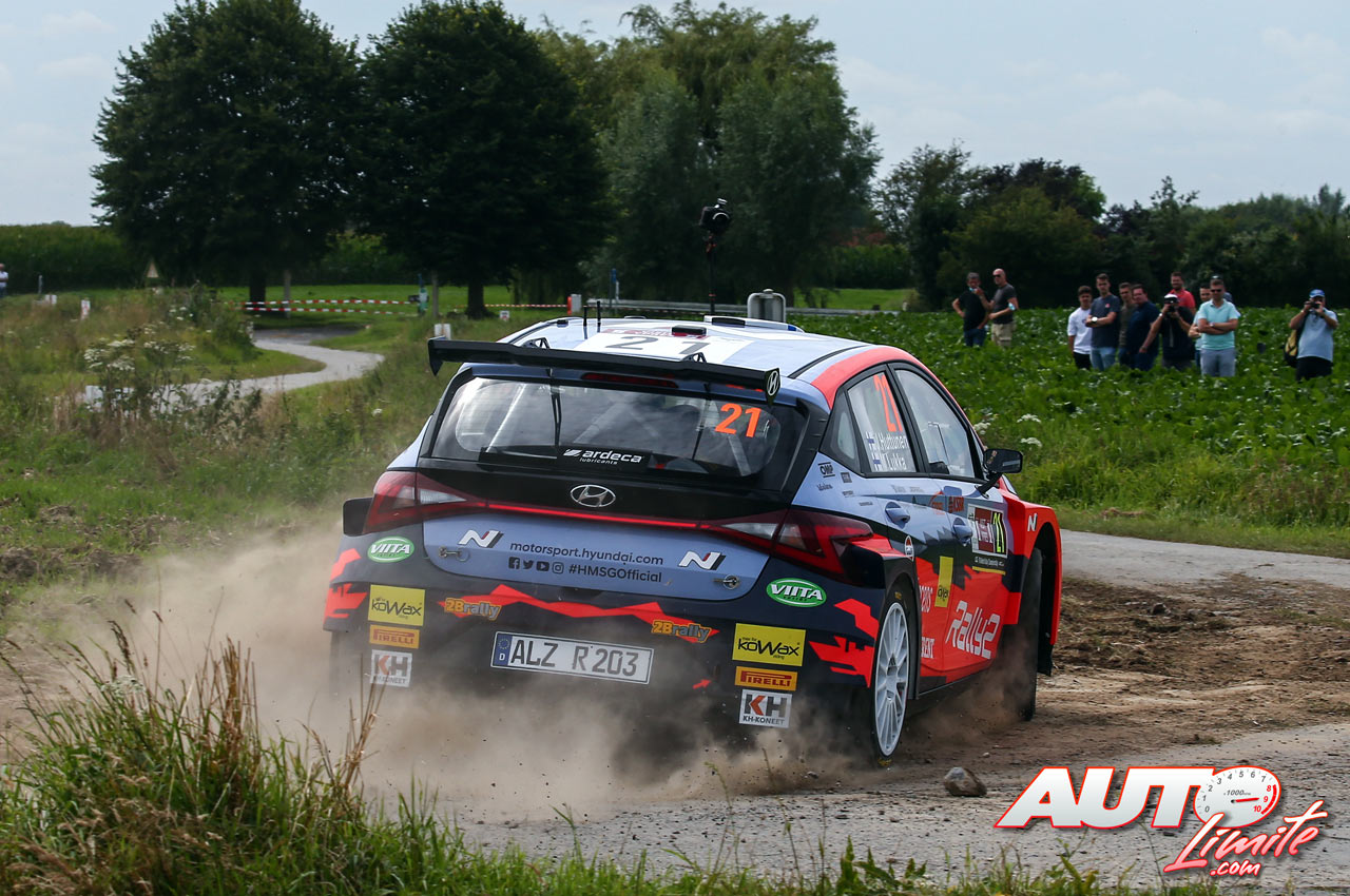 Jari Huttunen, al volante del Hyundai i20 N Rally2, durante el Rally de Bélgica 2021, puntuable para el Campeonato del Mundo de Rallies WRC 2.
