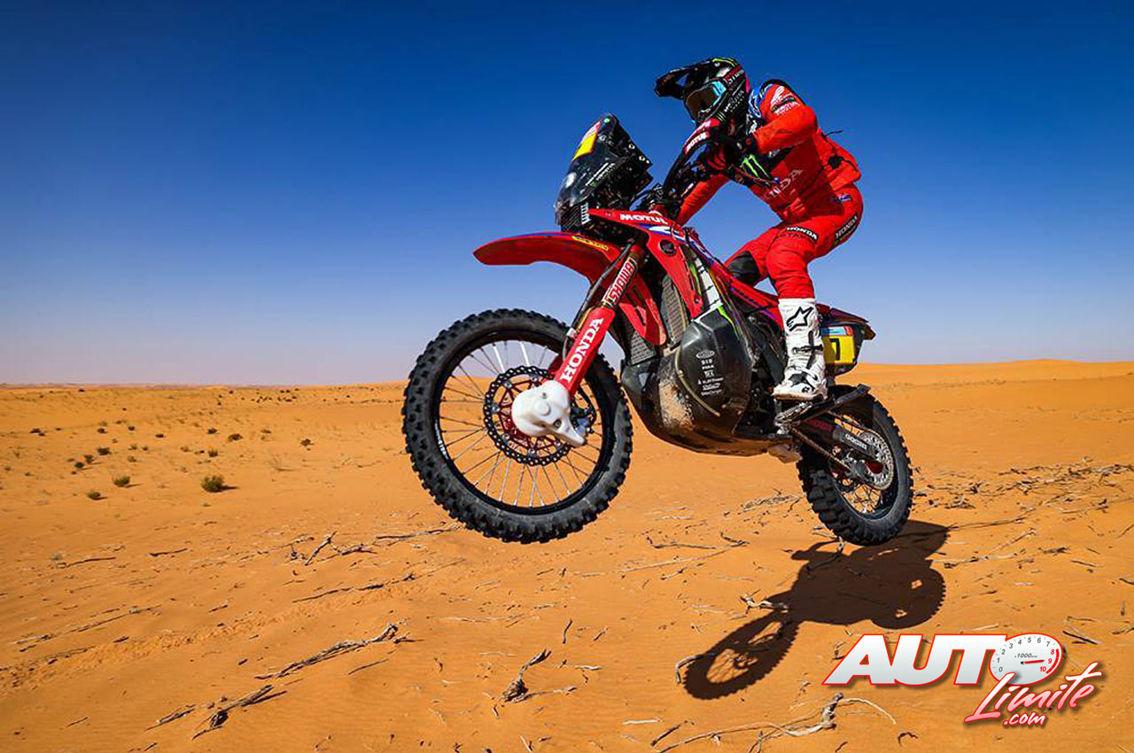 Pablo Quintanilla, a los mandos de su Honda CRF 450 Rally, durante una etapa del Rally Dakar 2022.