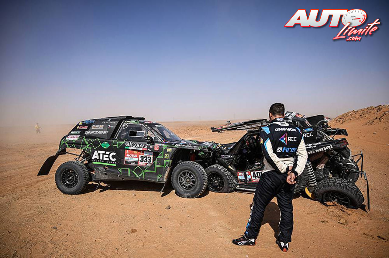 Marco Carrara (PH-Sport Zephyr Turbo nº 333) y Sergei Kariakin (Can-Am Maverick Turbo nº 406), sufrían una colisión durante una etapa del Rally Dakar 2022.