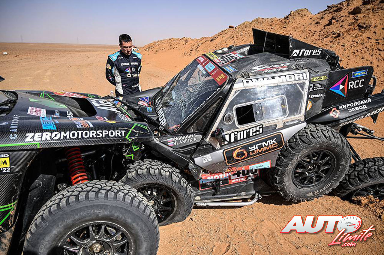 Marco Carrara (PH-Sport Zephyr Turbo nº 333) y Sergei Kariakin (Can-Am Maverick Turbo nº 406), sufrían una colisión durante una etapa del Rally Dakar 2022.