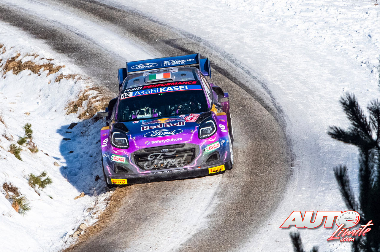 Craig Breen, al volante del Ford Puma Rally1 WRC, durante el Rally de Montecarlo 2022, puntuable para el Campeonato del Mundo de Rallies WRC.