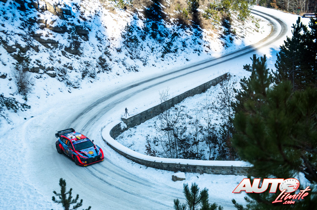 Thierry Neuville, al volante del Hyundai i20 N Rally1 WRC, durante el Rally de Montecarlo 2022, puntuable para el Campeonato del Mundo de Rallies WRC.