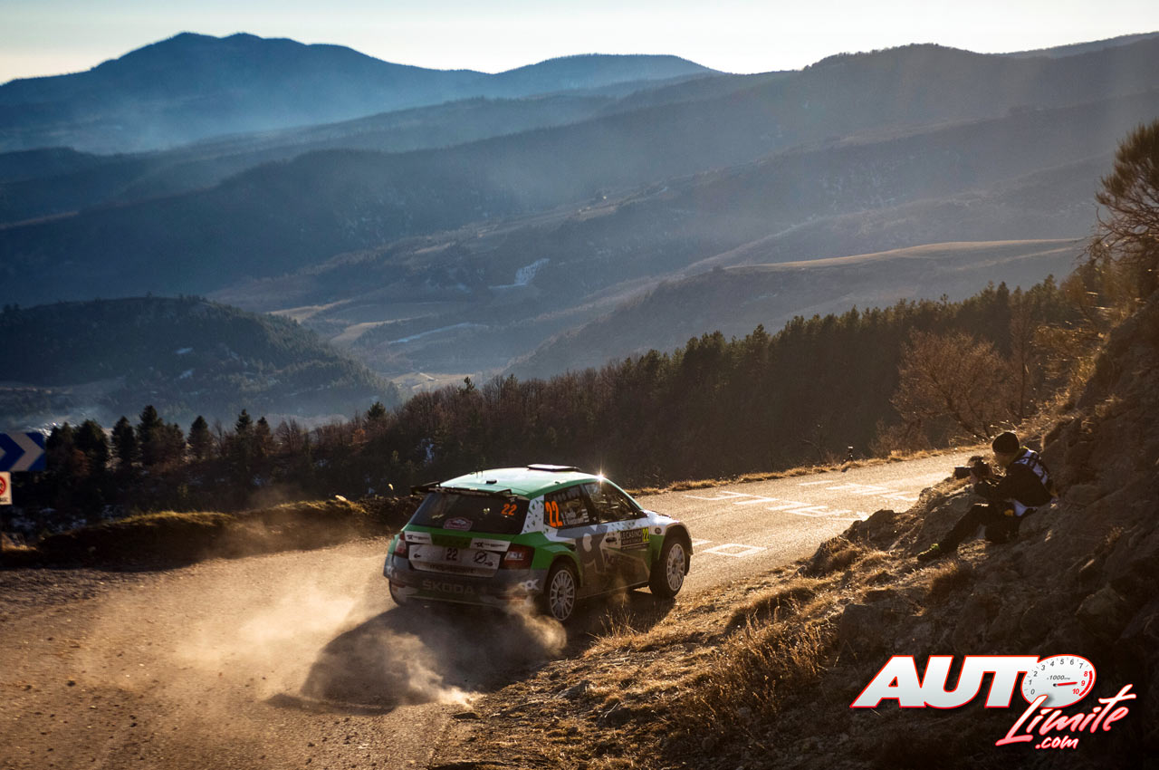 Nikolay Gryazin, al volante del Skoda Fabia Evo Rally2 Evo WRC 2, durante el Rally de Montecarlo 2022, puntuable para el Campeonato del Mundo de Rallies WRC 2.