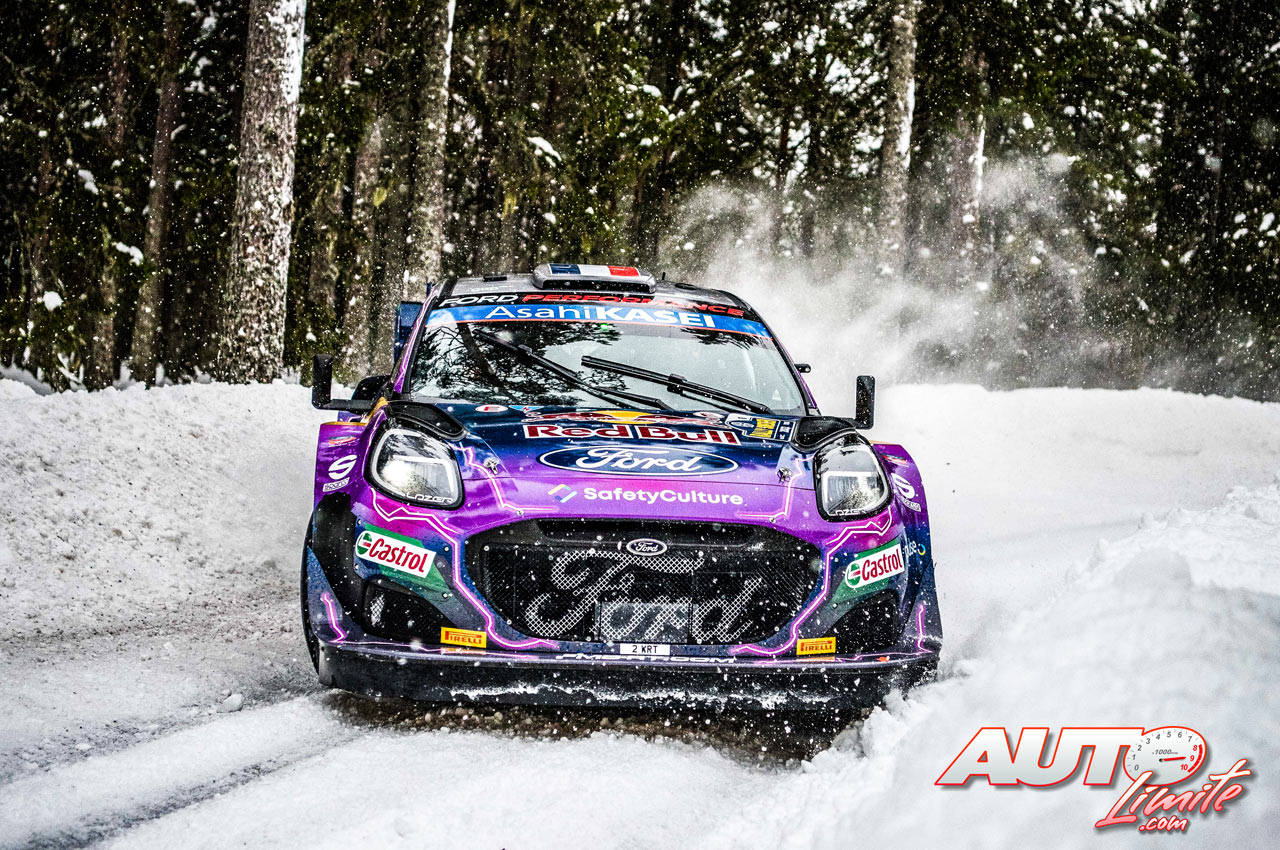 Adrien Fourmaux, al volante del Ford Puma Rally1 WRC, durante el Rally de Suecia 2022, puntuable para el Campeonato del Mundo de Rallies WRC.