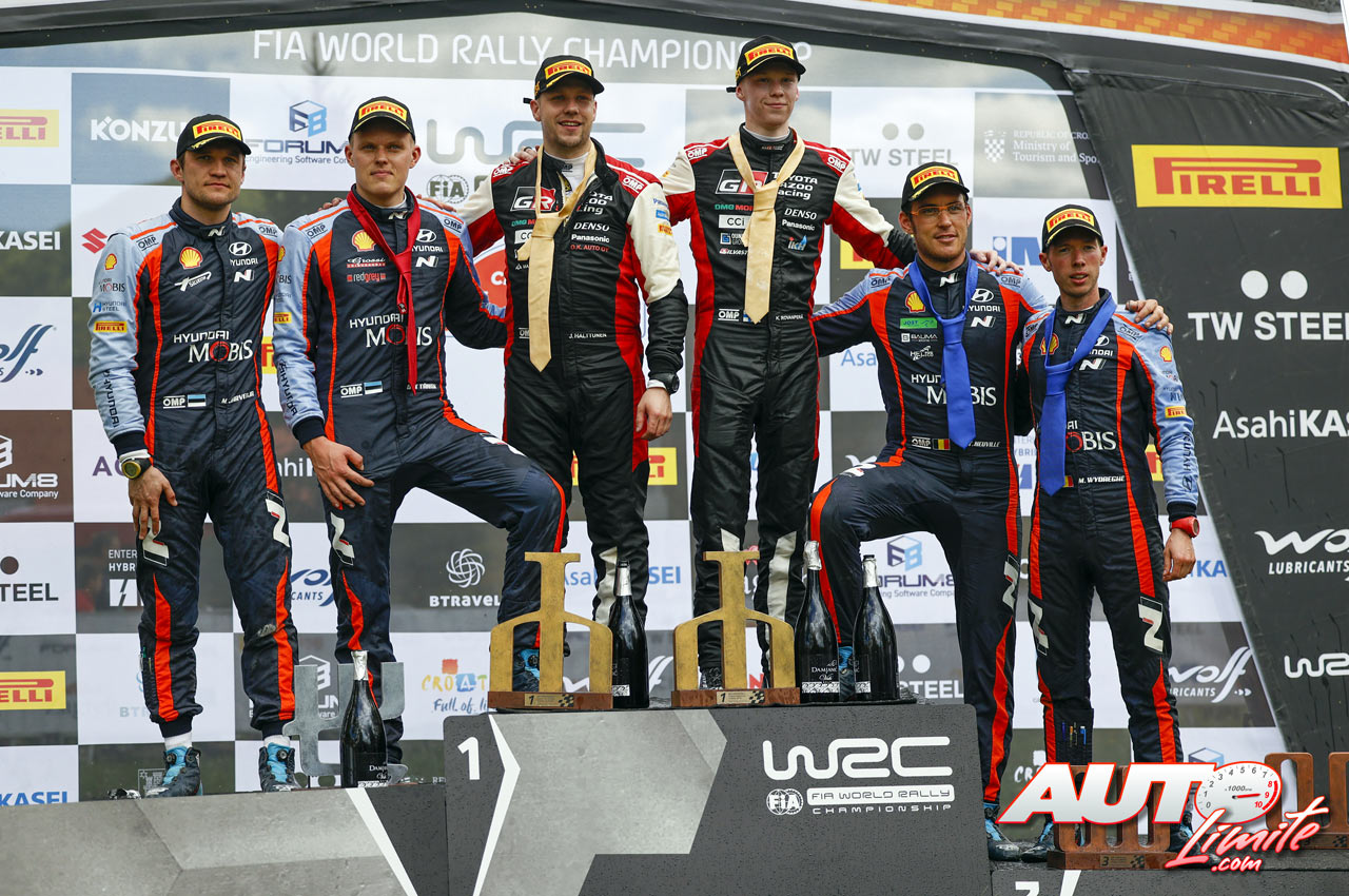 Podio del Rally de Croacia 2022, puntuable para el Campeonato del Mundo de Rallies WRC 2022. De izquierda a derecha: Martin Järveoja y Ott Tänak (Hyundai), Jonne Halttunen con Kalle Rovanperä (Toyota) y Thierry Neuville junto a Martijn Wydaeghe (Hyundai).