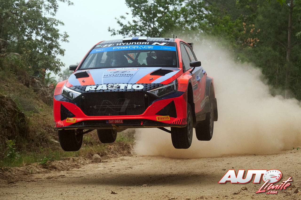 Teemu Suninen, al volante del Hyundai i20 N Rally2 WRC 2, durante el Rally de Portugal 2022, puntuable para el Campeonato del Mundo de Rallies WRC 2.