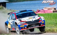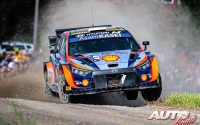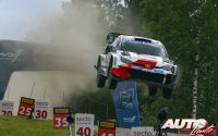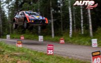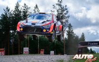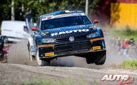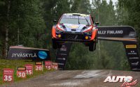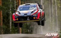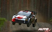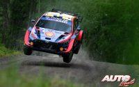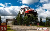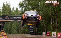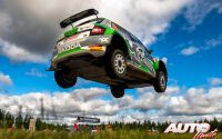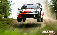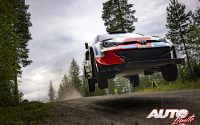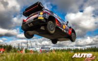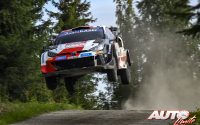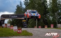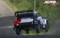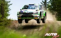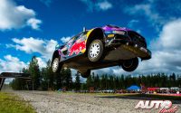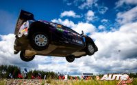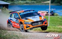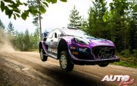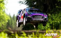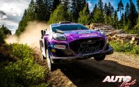 Adrien Fourmaux, al volante del Ford Puma Rally1 WRC, durante el Rally de Finlandia 2022, puntuable para el Campeonato del Mundo de Rallies WRC.