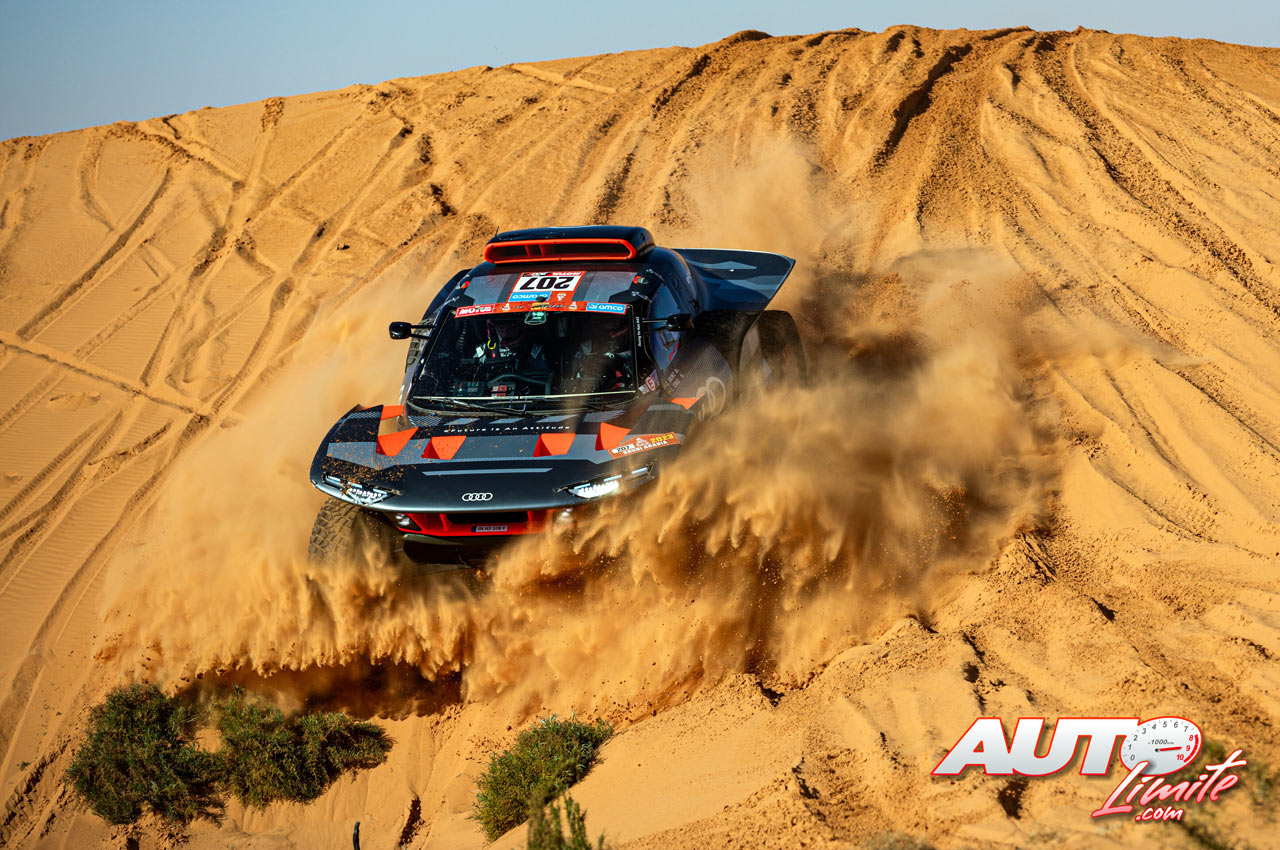 Carlos Sainz, al volante de un Audi RS Q e-tron Evo 2, durante una etapa del Rally Dakar 2023.