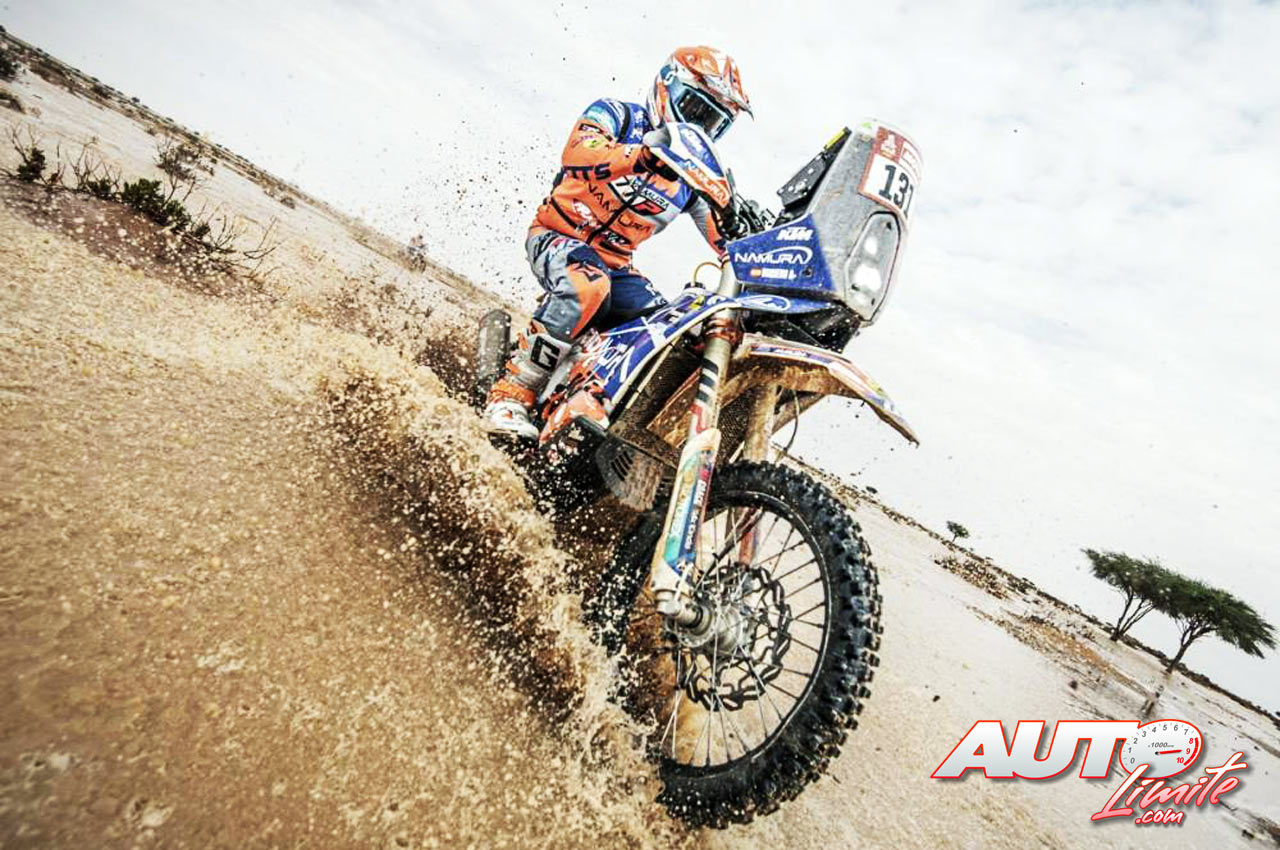 Sergio Vaquero, a los mandos de su KTM 450 Rally Replica, durante una etapa del Rally Dakar 2023.