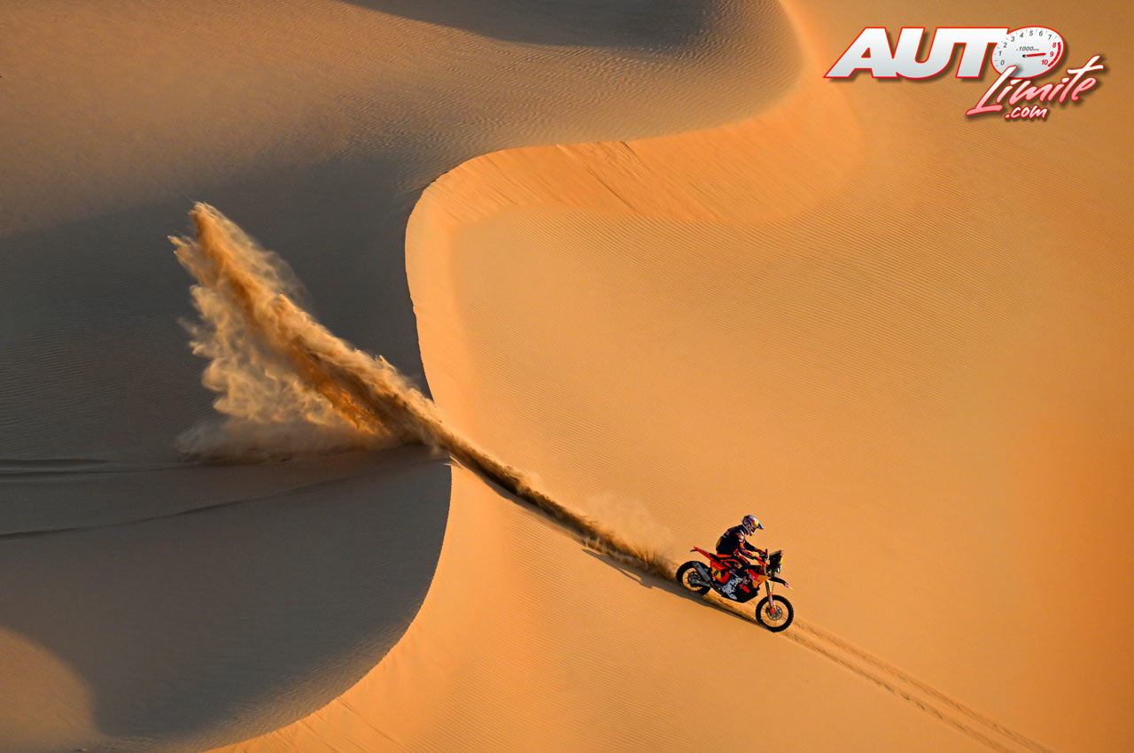 Toby Price, a los mandos de su KTM 450 Rally Factory, durante una etapa del Rally Dakar 2023.