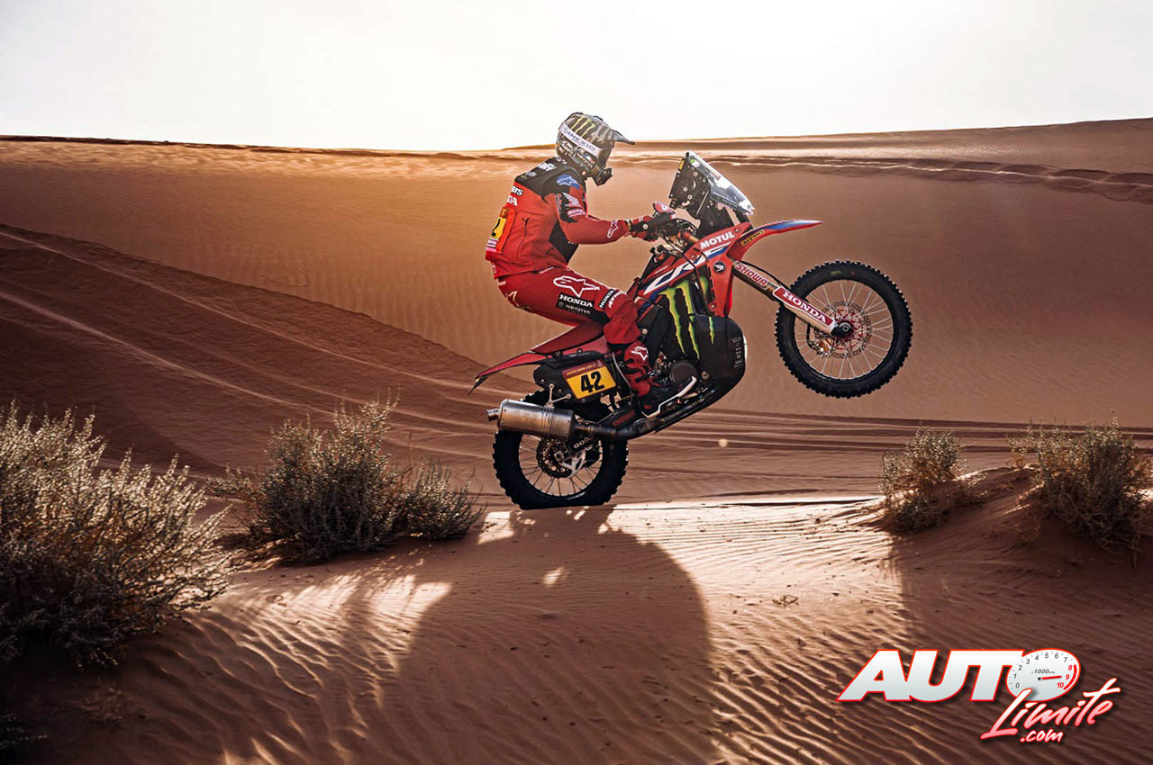 Adrien Van Beveren, a los mandos de su Honda CRF 450 Rally, durante una etapa del Rally Dakar 2023.
