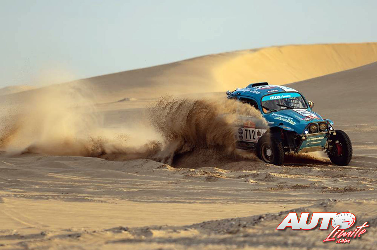 Diego Delespeaux, al volante de un Volkswagen Coccinelle buggy, durante una etapa del Rally Dakar Classic 2023.