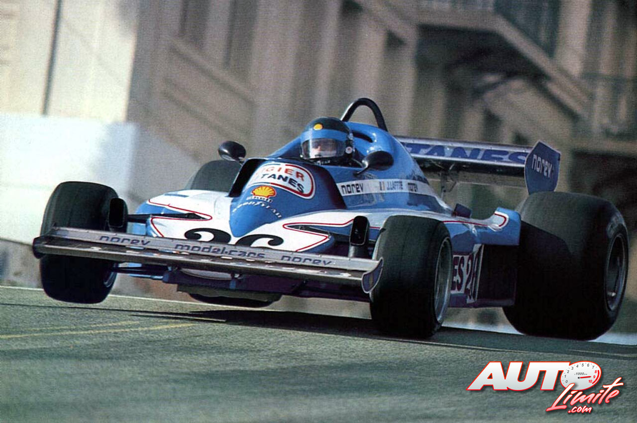 Jacques Laffitte con el Ligier JS7 en el circuito de Montecarlo, durante el Gran Premio de Mónaco de Fórmula 1 de 1977.