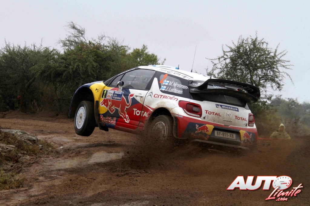 Mikko Hirvonen con Citroën DS3 WRC en el Rally de Argentina 2012, puntuable para el Campeonato del Mundo de Rallyes WRC.