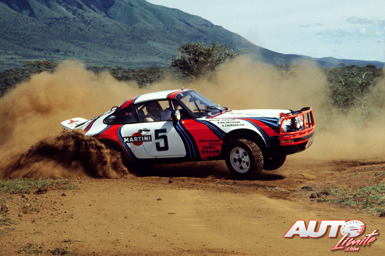 Björn Waldegard con Porsche 911 SC Safari en el Rally Safari de 1978, puntuable para el Campeonato del Mundo de Rallyes.