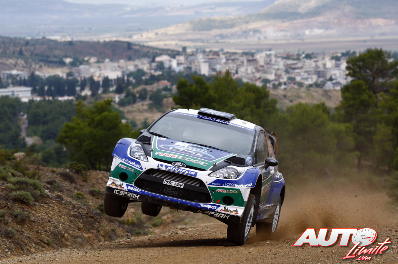 Jari-Matti Latvala con Ford Fiesta RS WRC en el Rally Acrópolis del 2012, puntuable para el Mundial de Rallyes WRC.