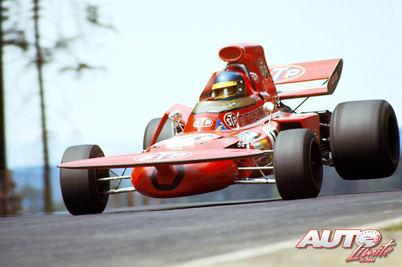 Ronnie Peterson, al volante del March 711, "volando" en el circuito de Nürburgring-Nordschleife durante el Gran Premio de Alemania de Fórmula 1 de 1971.