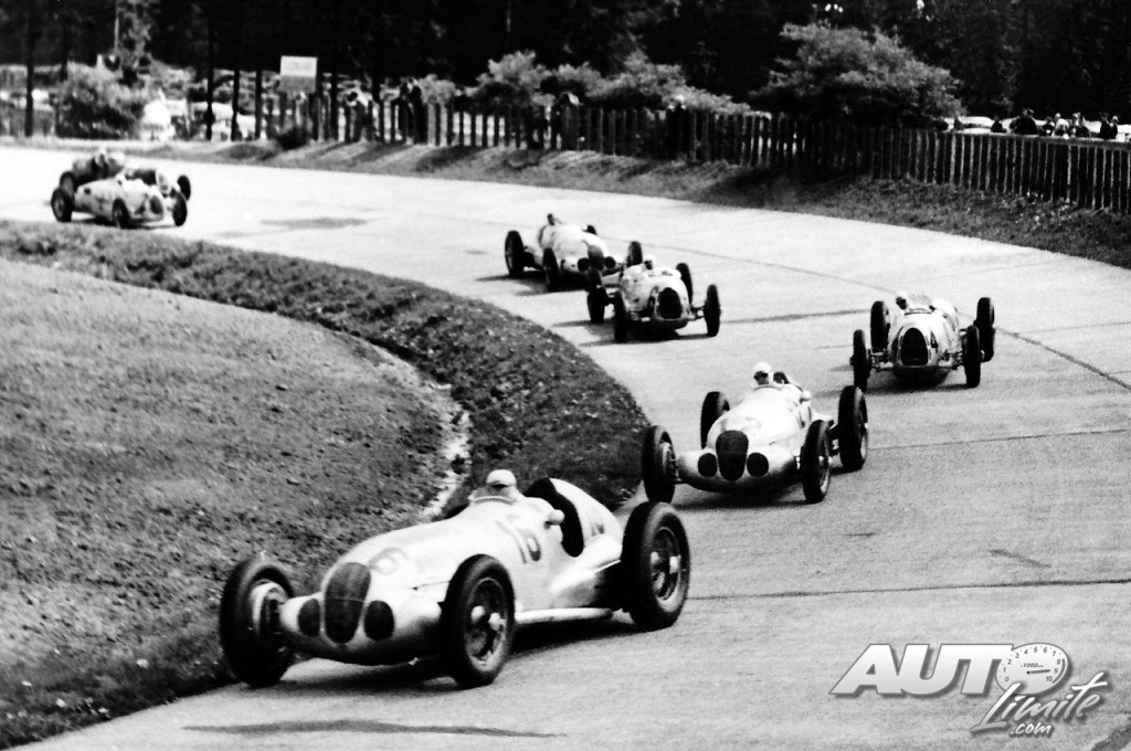 En el año 1937, Mercedes y Auto-Union desarrollaron los coches más rápidos y potentes del momento. En esta foto del Grand Prix de Alemania de 1937 podemos ver sobre el circuito de Nürburgring a los Mercedes W125 de Hermann Lang (nº 16), Rudolf Caracciola (nº 12) y Manfred von Brauchitsch (nº 14), seguidos por los Auto-Union Tipo C de Bernd Rosemeyer (nº 4) y de Hermann Paul Müller (nº 6).