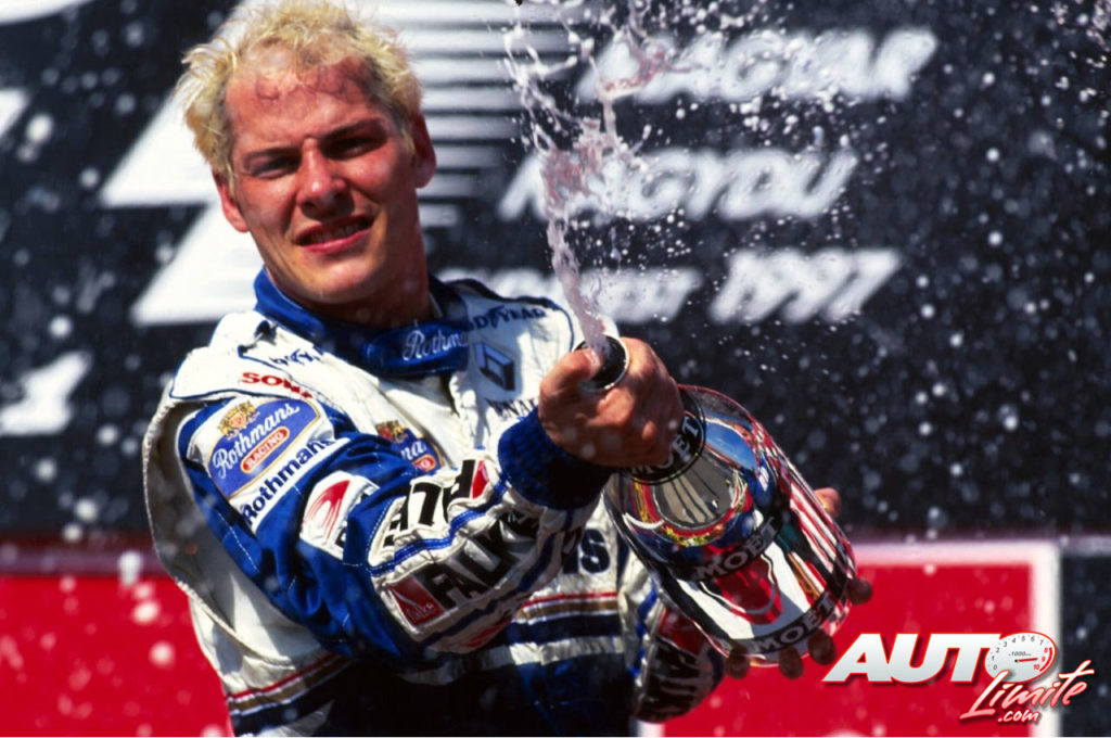 Jacques Villeneuve celebrando la victoria en el GP de Hungría 1997, disputado en el circuito de Hungaroring. El hijo de Gilles Villeneuve se proclamó Campeón del Mundo de Fórmula 1 en 1997.