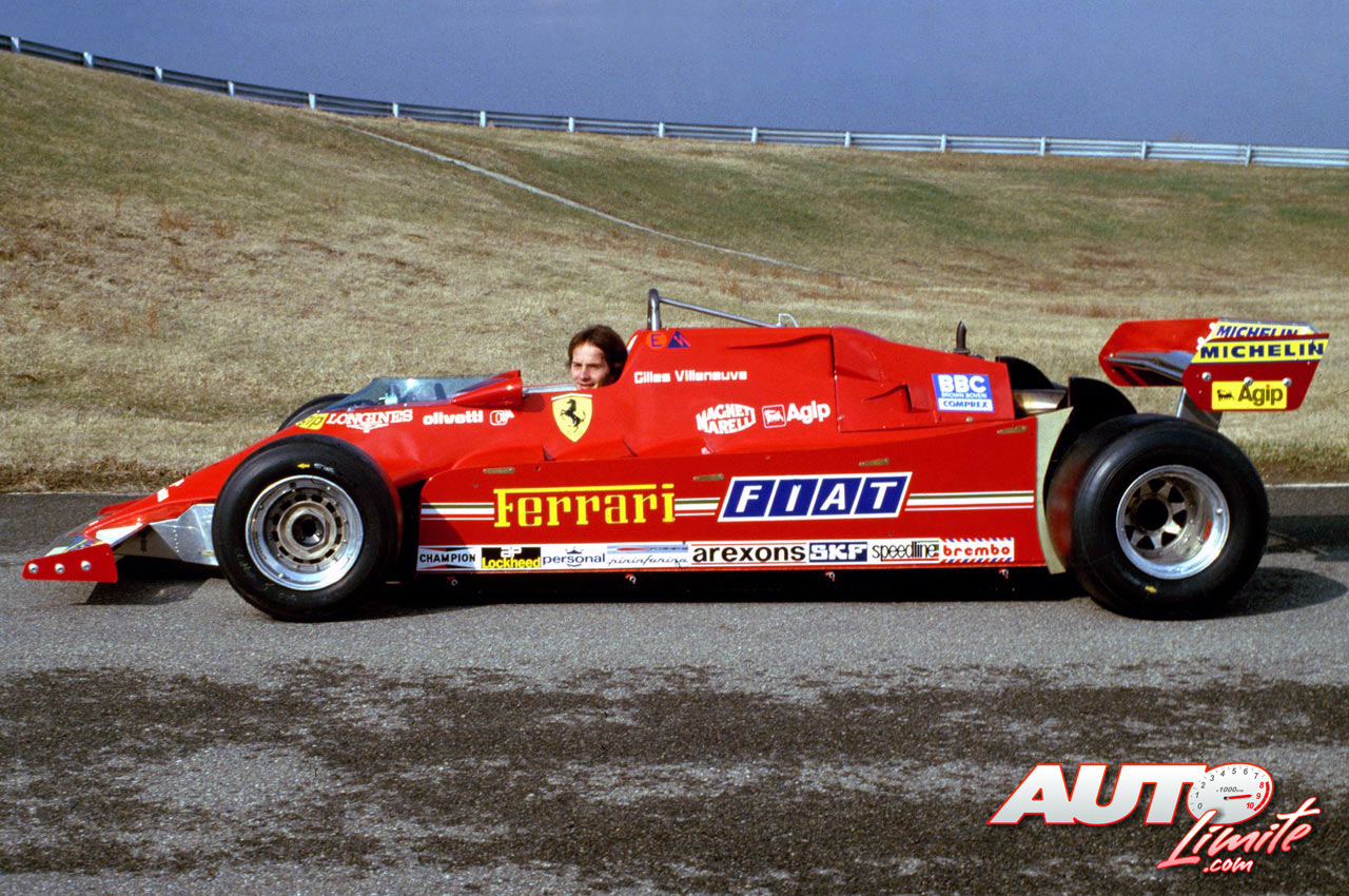 Gilles Villeneuve a los mandos del Ferrari 126 CX con compresor "Comprex", durante su presentación en el circuito de Fiorano en la temporada de 1981.