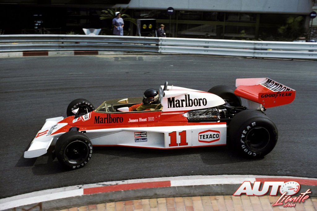 James Hunt con el McLaren-Ford M23 durante el GP de Mónaco de 1976.
