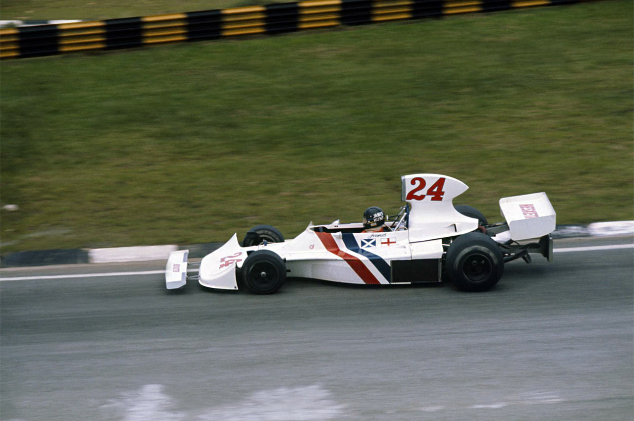 James Hunt con el Hesketh-Ford 308 B en el GP de Brasil de 1975.