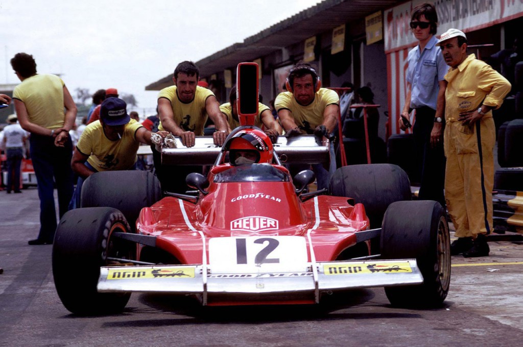 Niki Lauda con el Ferrari 312 B3/74 en el GP de Brasil de 1974.
