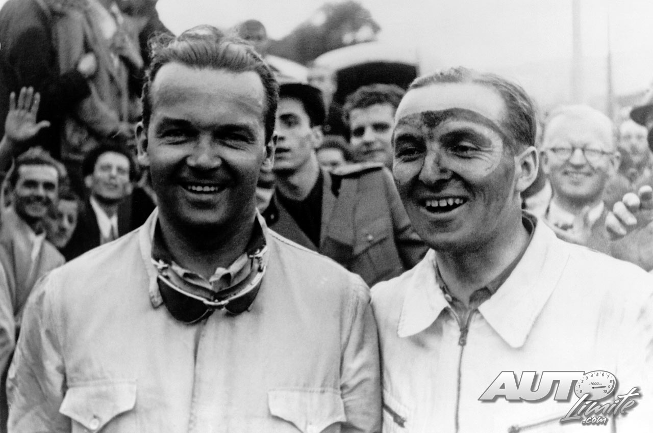 Rudolf Caracciola (izquierda) y Hermann Lang (derecha) obtuvieron las dos primeras posiciones para Mercedes en el Grand Prix de Italia de 1937.