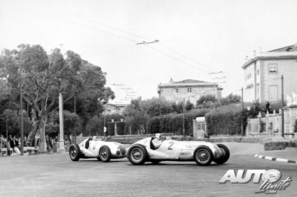Rudolf Caracciola (nº 2) y Hermann Lang (nº 6) se disputaron las dos primeras posiciones al volante de sus Mercedes W125 en el Grand Prix de Italia de 1937, disputado en el trazado de Livorno.