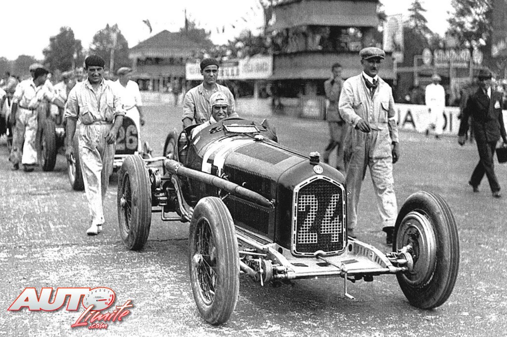 Tazio Nuvolari a bordo de un Alfa Romeo en el Gran Premio de Italia de 1932.