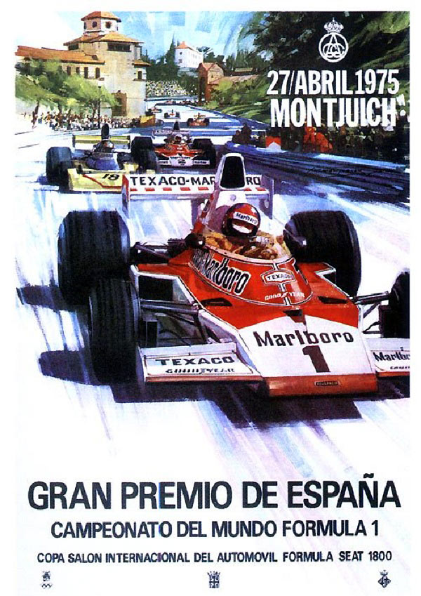 Cartel oficial del Gran Premio de España de Fórmula 1 de 1975, disputado en el circuito de Montjuic.