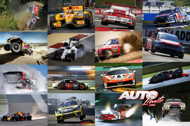 En esta ocasión os mostramos unas instantáneas apasionantes del Campeonato del Mundo de Fórmula 1, la Fórmula Indy Car, el Campeonato del Mundo de Rallies “WRC”, el Campeonato del Mundo de Rallycross “WRX”, el Rally Dakar, la Copa Norteamericana de Rallies “NARC” (“North American Rally Cup”), los Nitro Rallycross World Games “NRX”, el Campeonato Global de Rallycross “GRC”, las American Le Mans Series “ALMS”, las 12 Horas de Sebring, el campeonato americano de dragsters “NHRA” (“National Hot Rod Association”), el Campeonato del Mundo de Turismos “WTCC” (“World Touring Car Championship”), la “Porsche Supercup”, la “Porsche Carrera Cup” de Alemania, el Campeonato Australiano de Turismos “V8 Supercars” y la “Ferrari Challenge Europe”.