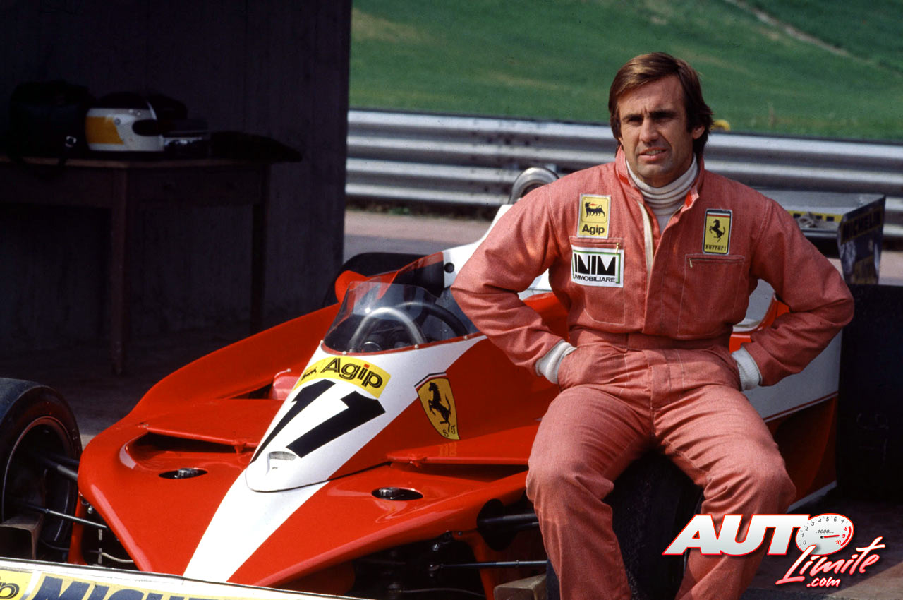 Carlos Reutemann durante la presentación del Ferrari 312 T3 con el que disputaron el Campeonato del Mundo de Fórmula 1 de 1978.